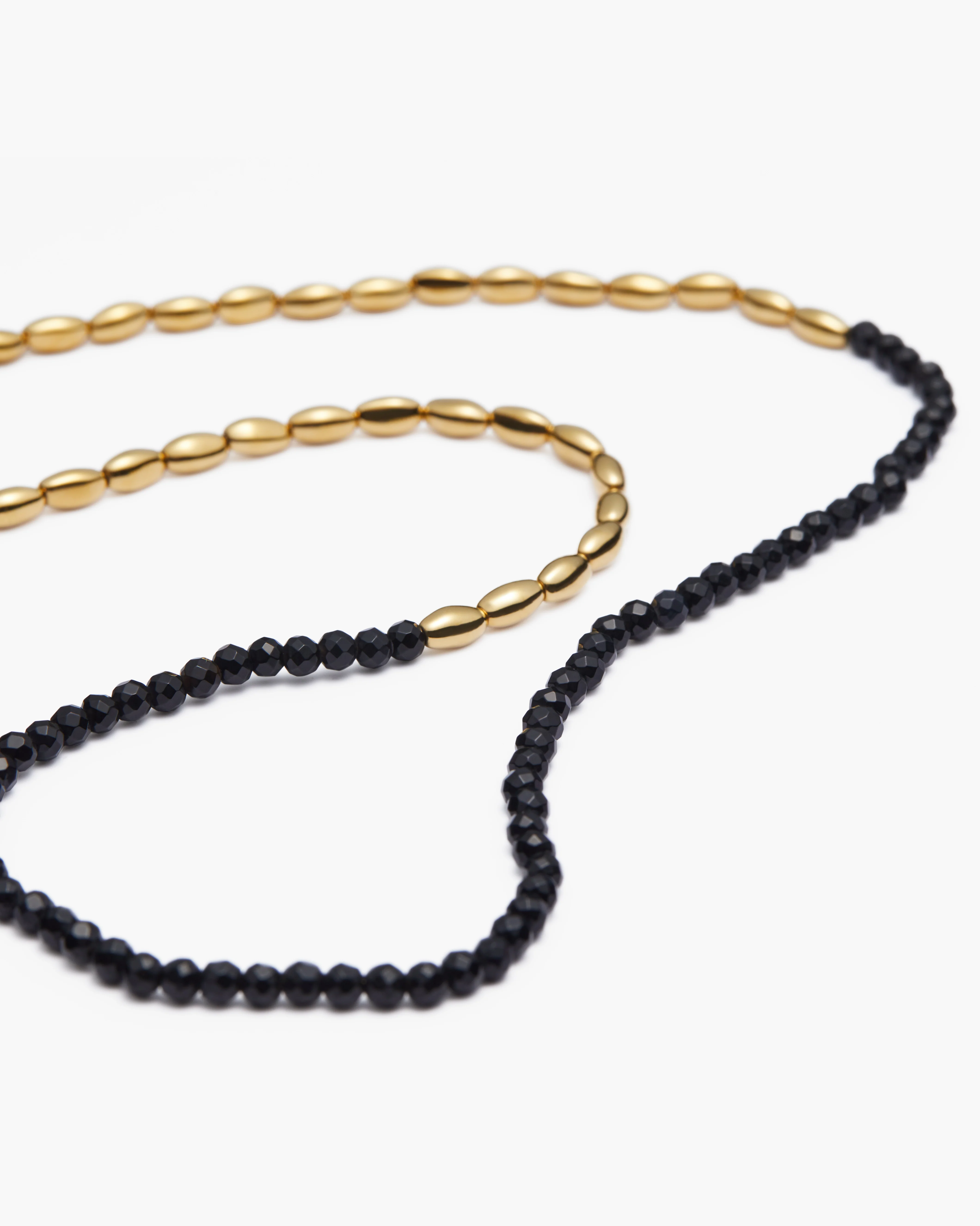 Features 2.8mm natural Black Agate facet-cut gemstones strung on a beaded chain
